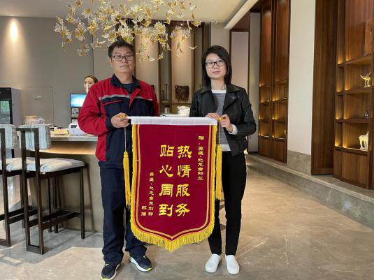 事雖小,但充分證明項目一心為業戶著想,精心清潔、精致服務。業戶的認可,是對環境部工作的鞭策和激勵。隨后,美盛中心物業服務中心收到業戶512房間錦旗一面,鼓舞項目環境部在以后的工作中繼續努力,讓在美盛辦公的業主深刻感受到我們的美+服務。
